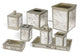 Item Reg. Price Measurements Lotion dispenser $52.00 2.75"Dia. x 7.25"H Tumbler $35.00 3"Dia. x 4"H Toothbrush Holder $35.00 3"Dia. x 4"H Soap Dish $28.00 4.25"Dia. x 1"H Tray $52.00 10.91"L x 6.34"W x 0.91"H Cotton Jar $48.00 4.25"Dia. x 4.5"H Tissue Holder $50.00 11.5"L x 6"W x 1"H Waste Basket...