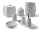 Item Measurements Lotion dispenser 2.76"Dia. x 7.32"H Tumbler 2.76"Dia. x 4.29"H Toothbrush Holder 4.13"L x 2.05"W x 4.21"H Soap Dish 5.59"L x 3.78"W x 0.75"H Tray 6.97"L x 3.94"W x 0.79"H Cotton Jar 3.54"Dia. x 4.21"H Tissue Holder 5.51"L x 5.51"W x 5.98"H Waste Basket 7.48"Dia. x 9.76"H